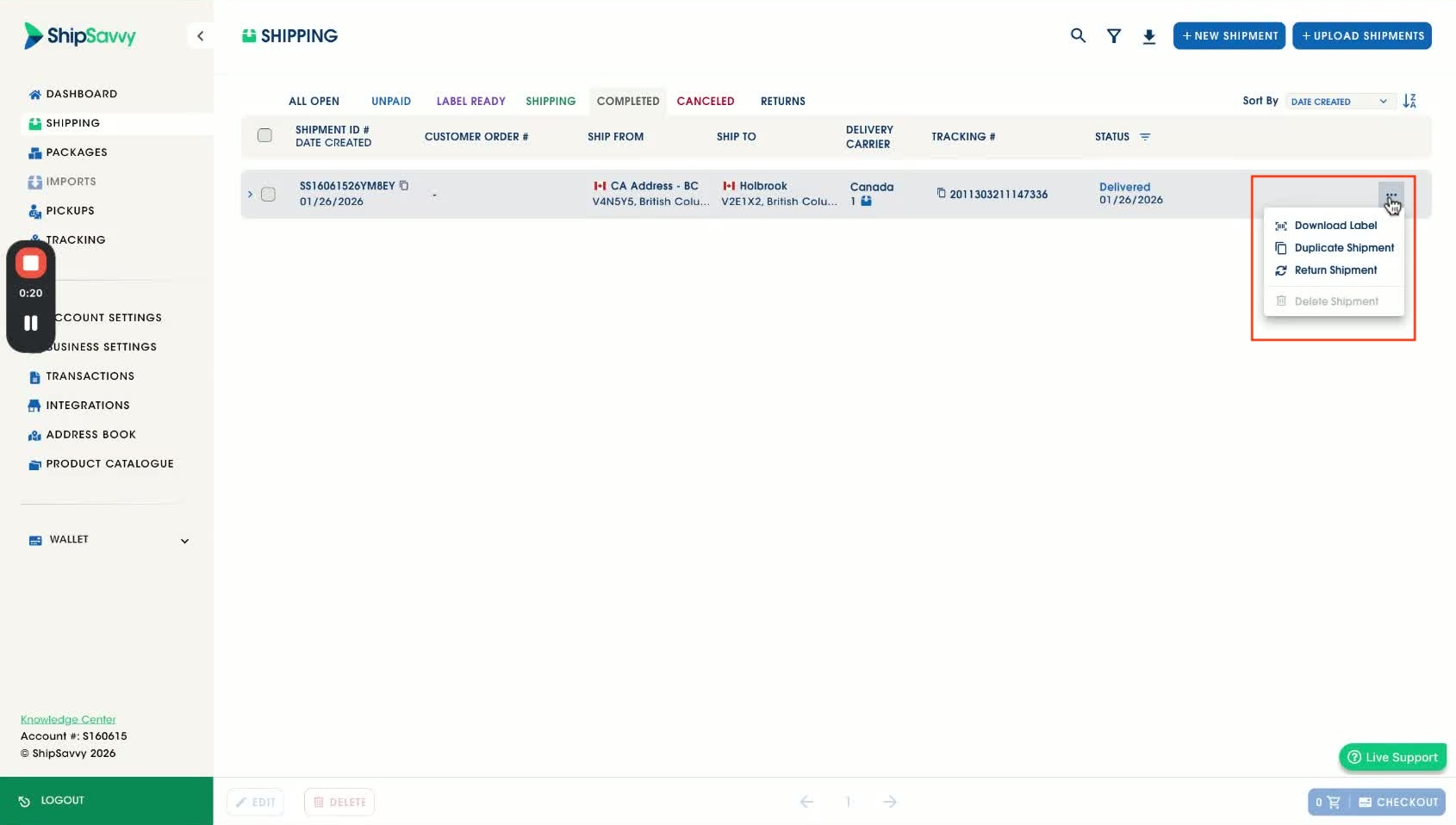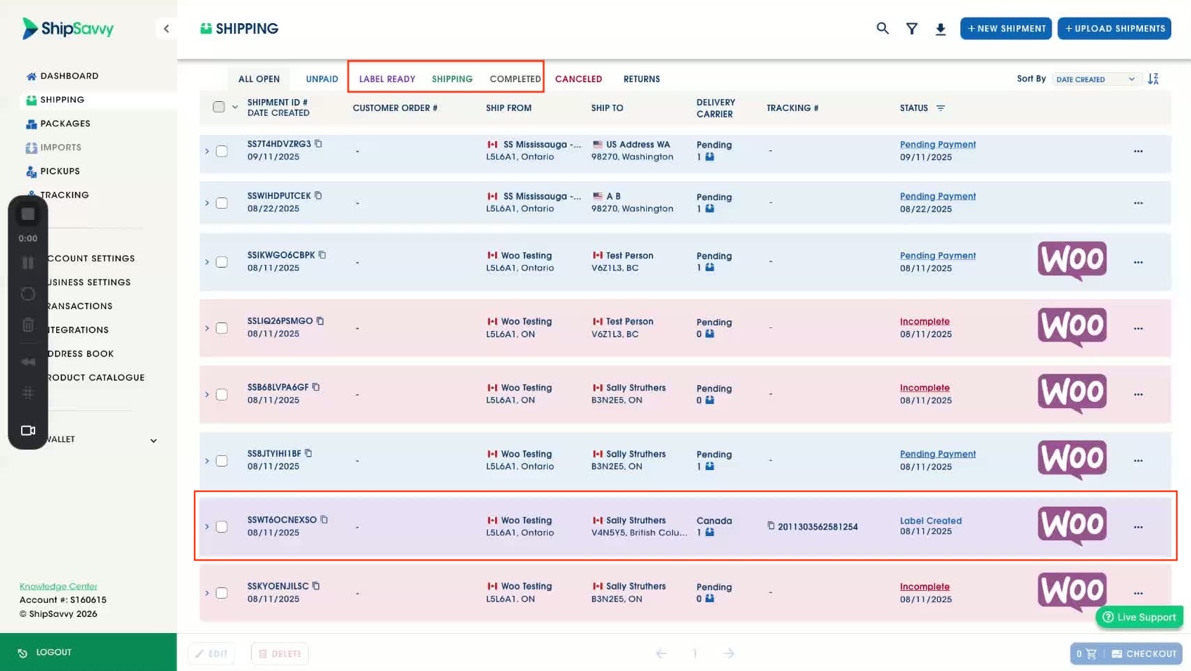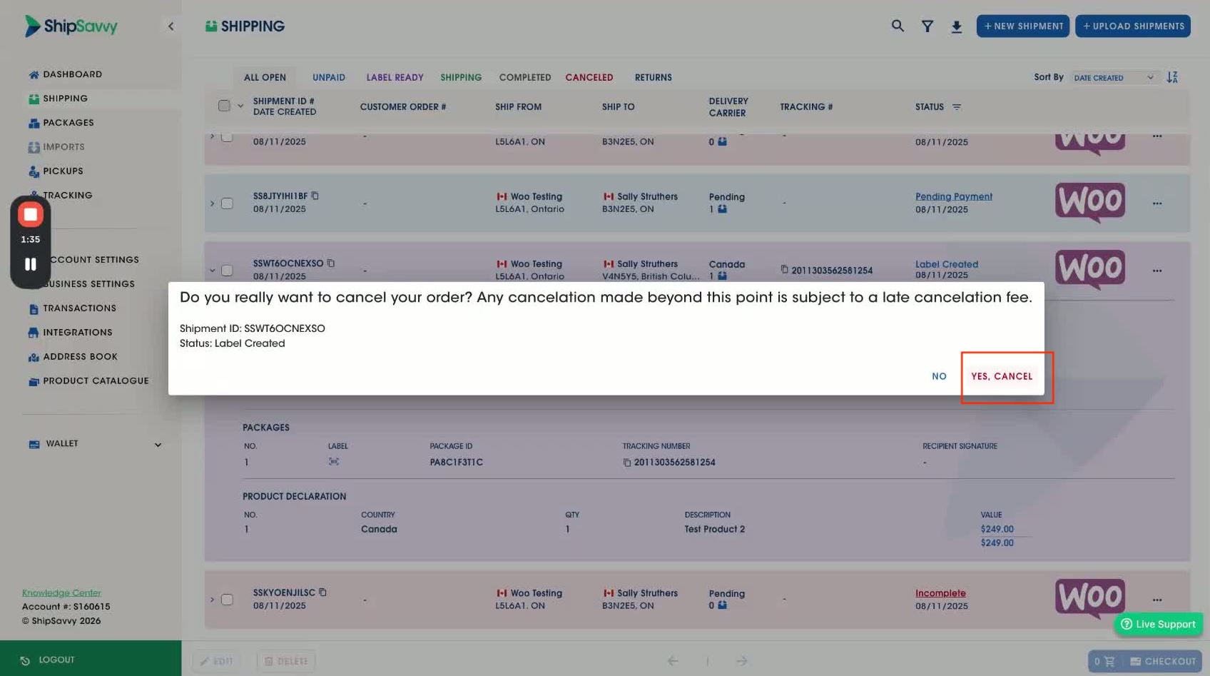 1. Identify the Shipment Status - Ensure the shipment is in a 'label ready' state. Note that shipments that have already been shipped cannot be canceled