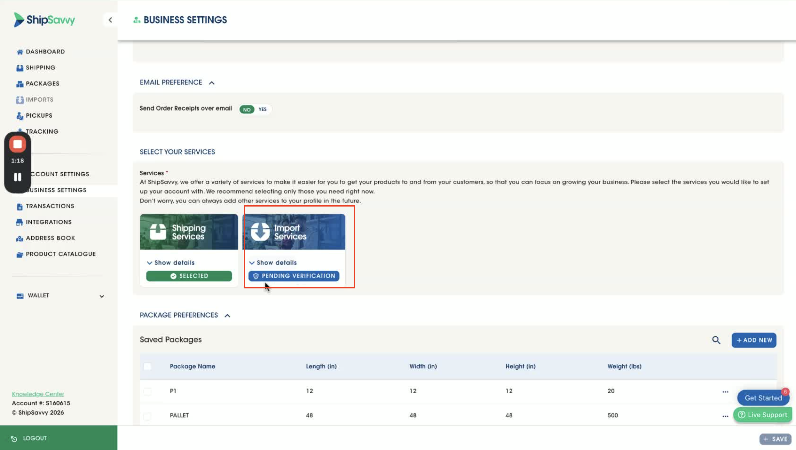1. Go to your Business Settings: Click on Business Settings tab inside your ShipSavvy Portal.